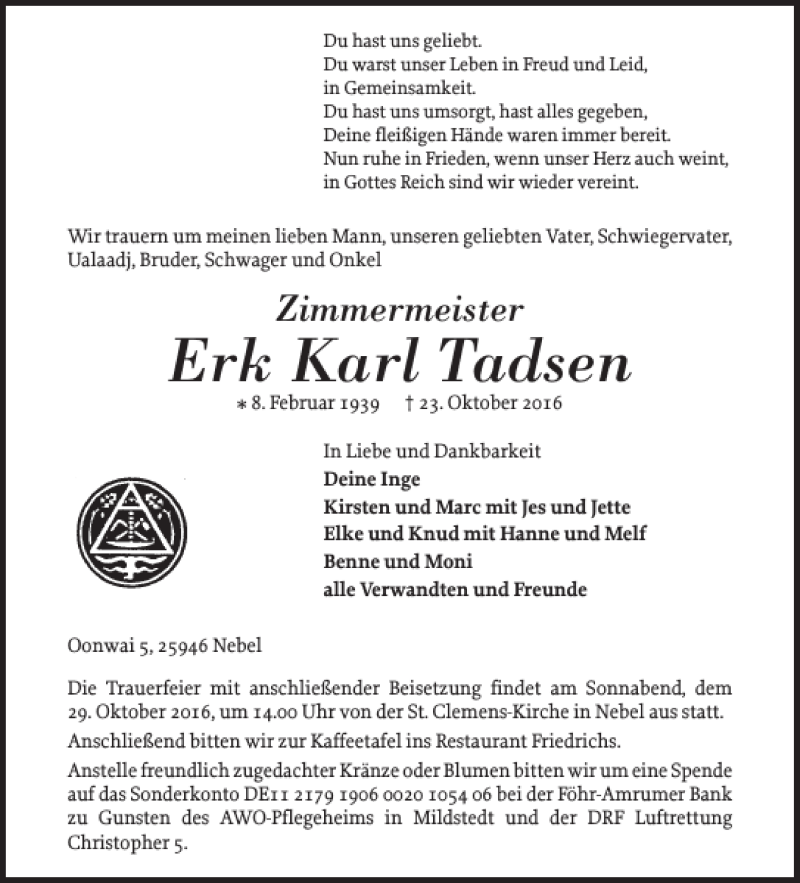Erk Karl Tadsen (1939-2016)