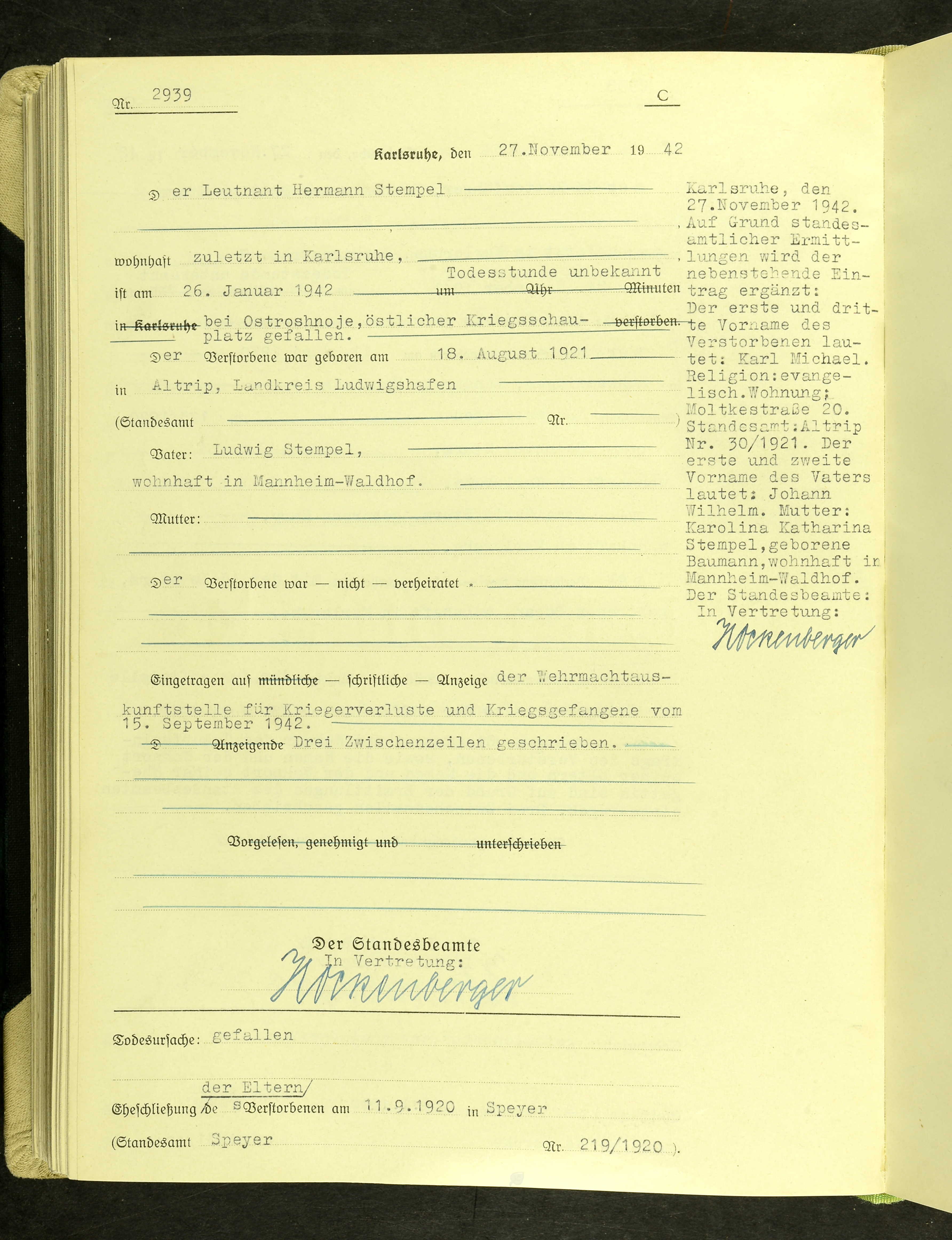 Hermann Stempel wurde noch nicht auf einen vom Volksbund errichteten Soldatenfriedhof überführt.