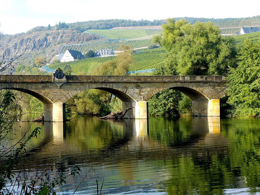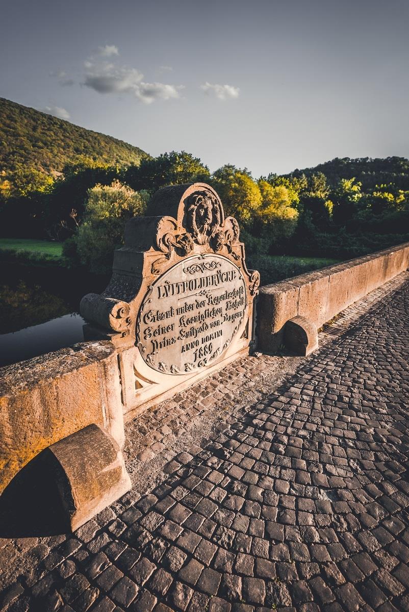 Sechsbogige Luitpold-Brücke über die Nahe in Oberhausen an der Nahe aus Sandsteinquadern, Baumeister Bezirksbauschaffner N. Emrich, Kirchheimbolanden. 1889, drei Jahre nach Herrschaftsantritt, ließ der ab 1886 bayrische Prinzregent Luitpold (1821-1912) die historische Sandsteinbrücke erbauen, um den Winzern mit ihren Trauben und Weinen den Weg zu den Handelshäusern in Bad Kreuznach zu erleichtern. Die Nahe, über die die Luitpoldbrücke führt, war nach dem Wiener Kongress zeitweise Grenzfluss und trennte das Königreich Bayern (genauer die Bayerische Pfalz - auch genannt: Kurpfalz) von Preußen und ist heute das Wahrzeichen des Ortes.