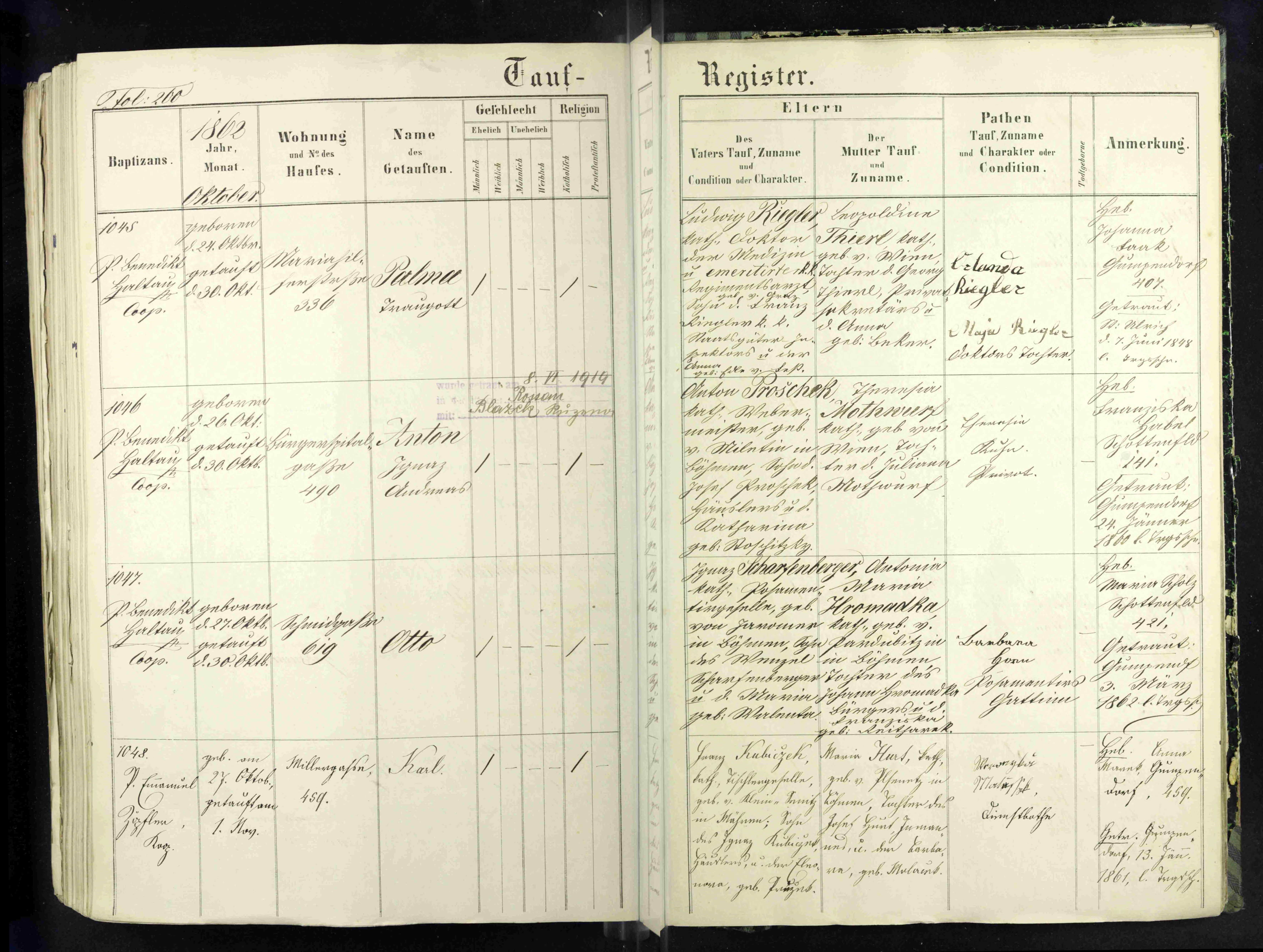 | Palma Traugott Riegler | * 24.10.1862 (Wien) | t 19.03.1863 (Wien) |