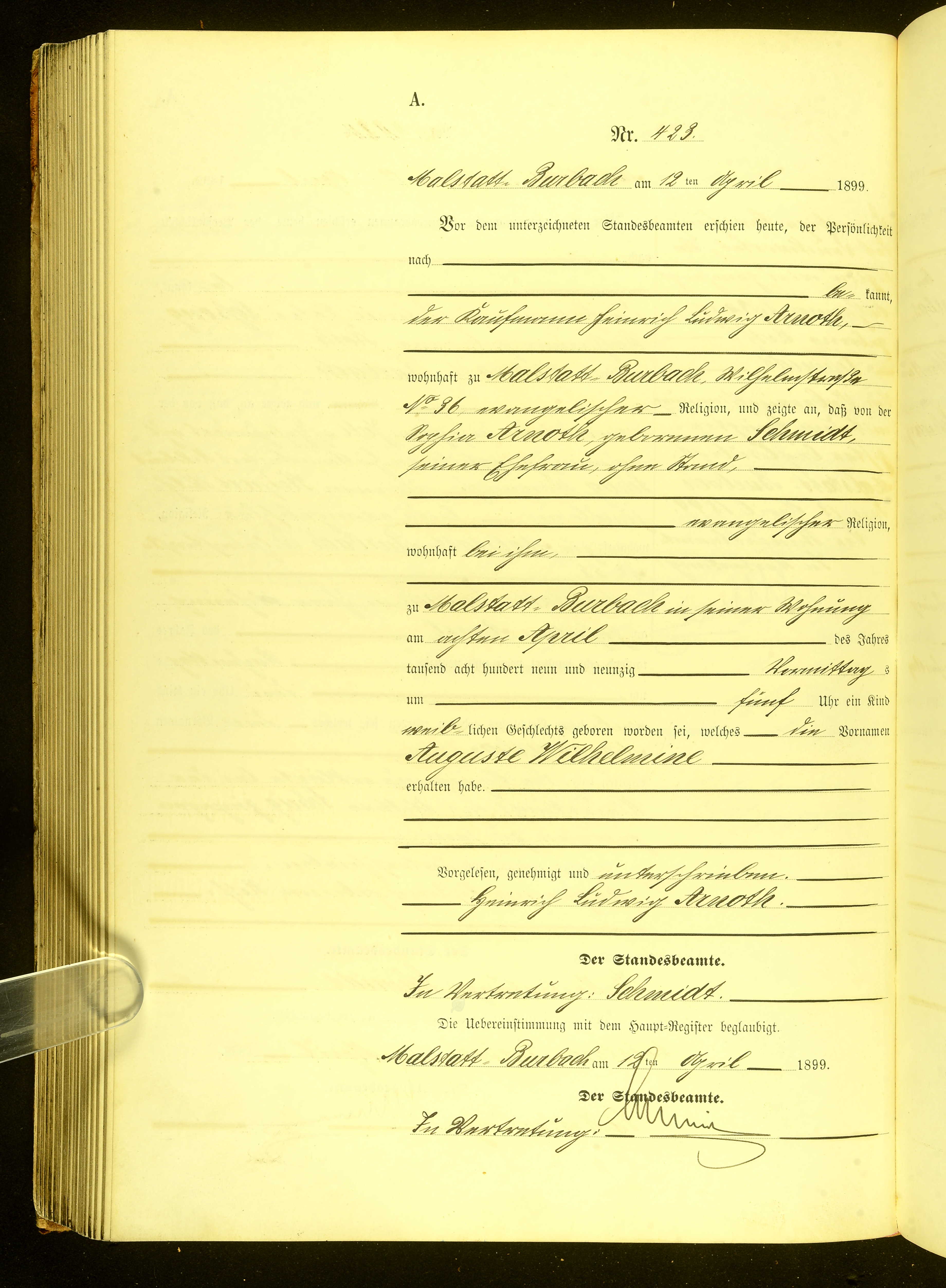 | Auguste Wilhelmine Arnoth | * 08.04.1899 (Saarbrücken-Malstatt) | oo 22.10.1921 (Saarbrücken) August Friedrich Ferdinand Grahn |