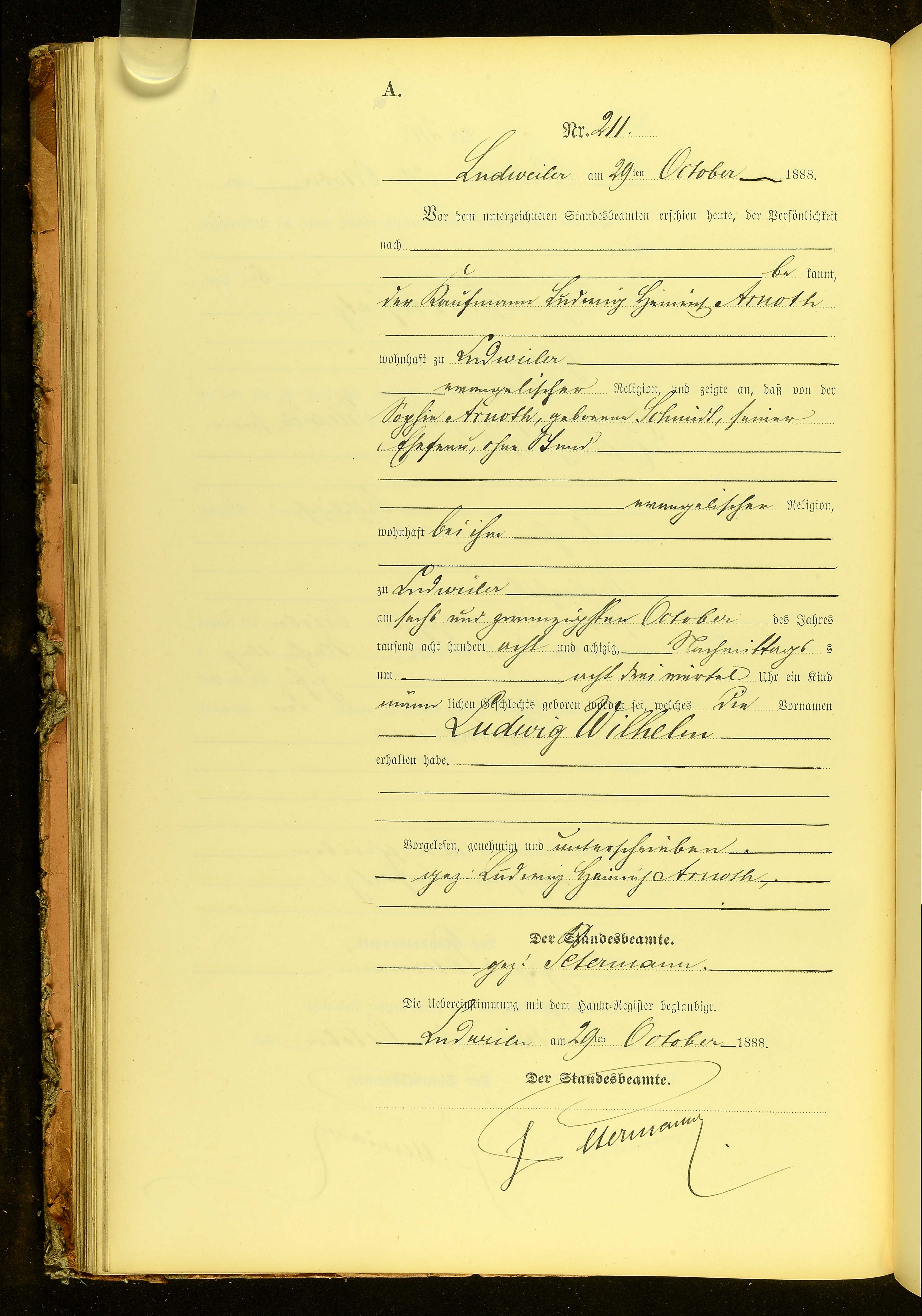 | Ludwig Wilhelm Arnoth | * 26.10.1888 (Ludweiler) | t 26.08.1894 (Saarbrücken-Malstatt) |