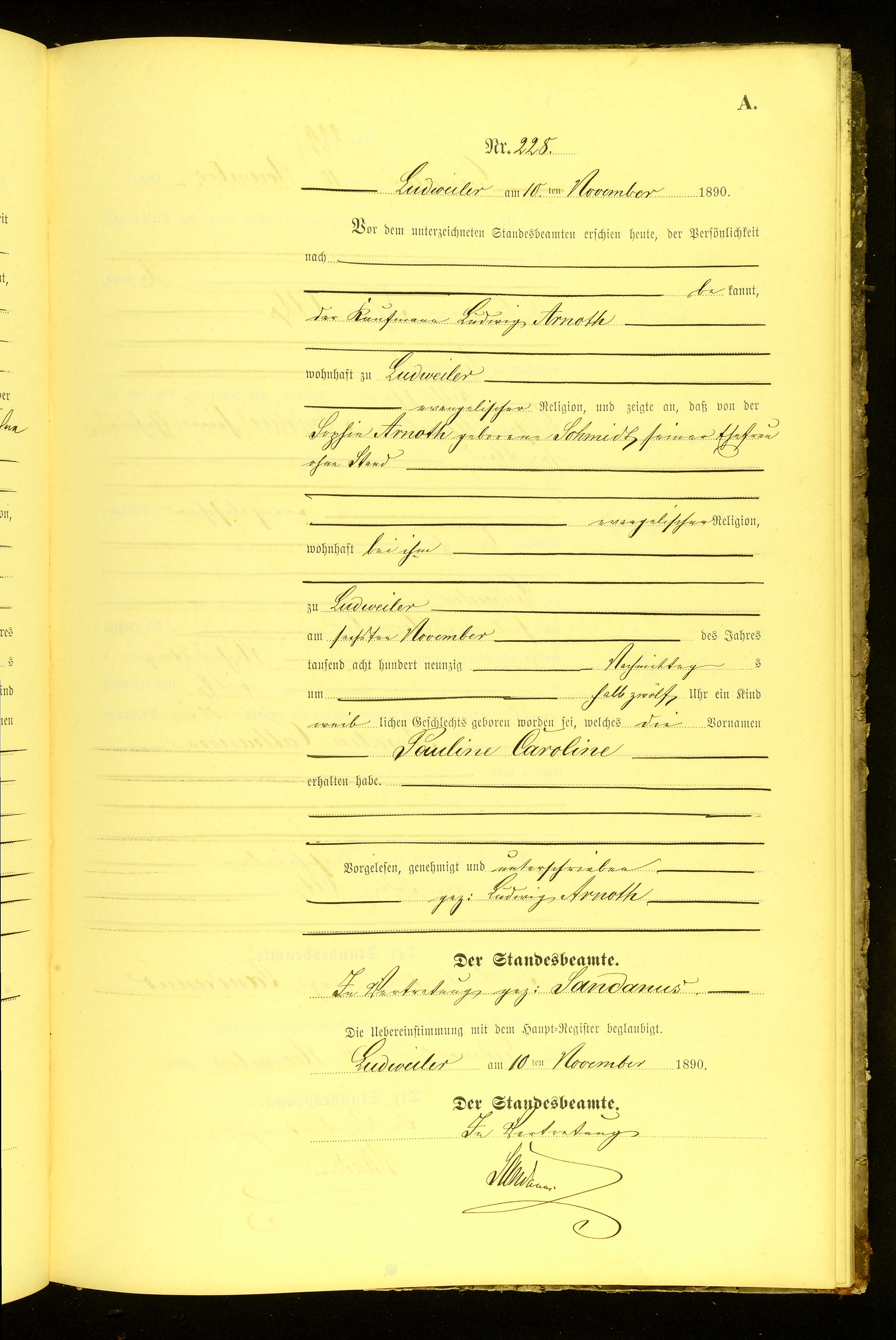 | Pauline Caroline Arnoth | * 06.11.1890 (Ludweiler) | oo 03.12.1912 (Saarbrücken) Gustav Müller |