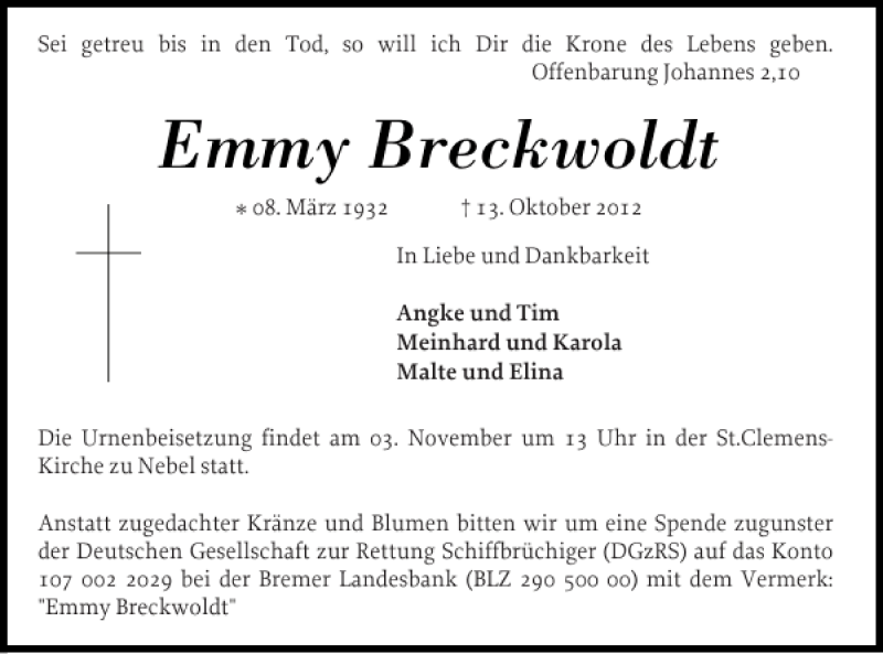 Emmy Marie Breckwoldt (geb. Götsch) (1932-2012)