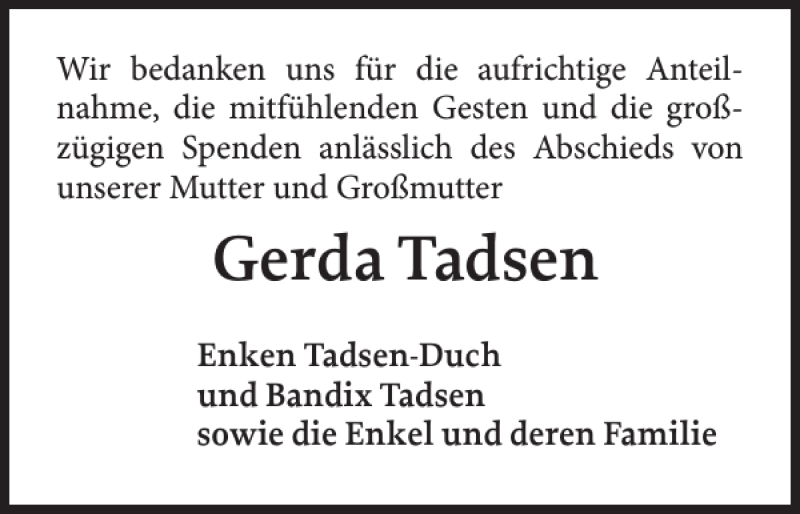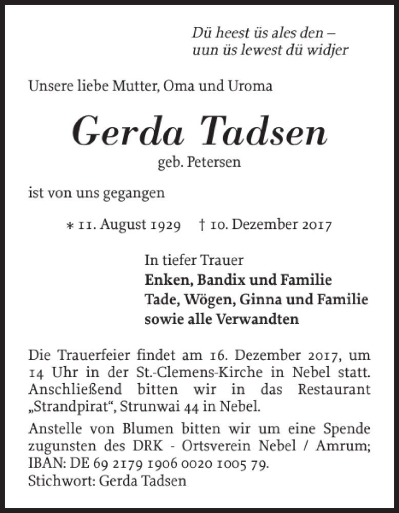 Gerda Catharine Tadsen (geb. Petersen) (1929-2017)