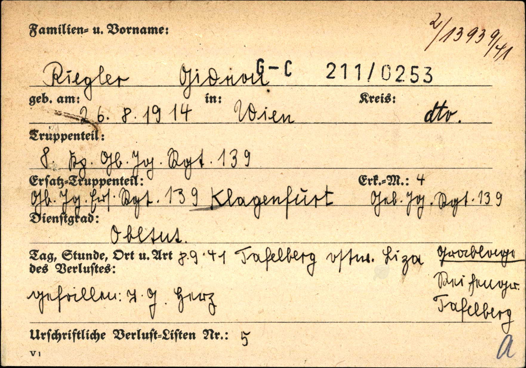 Laut Auskunft des Volksbund wurde Gideon Riegler noch nicht auf einem vom Volksbund errichteten Soldatenfriedhof überführt.
