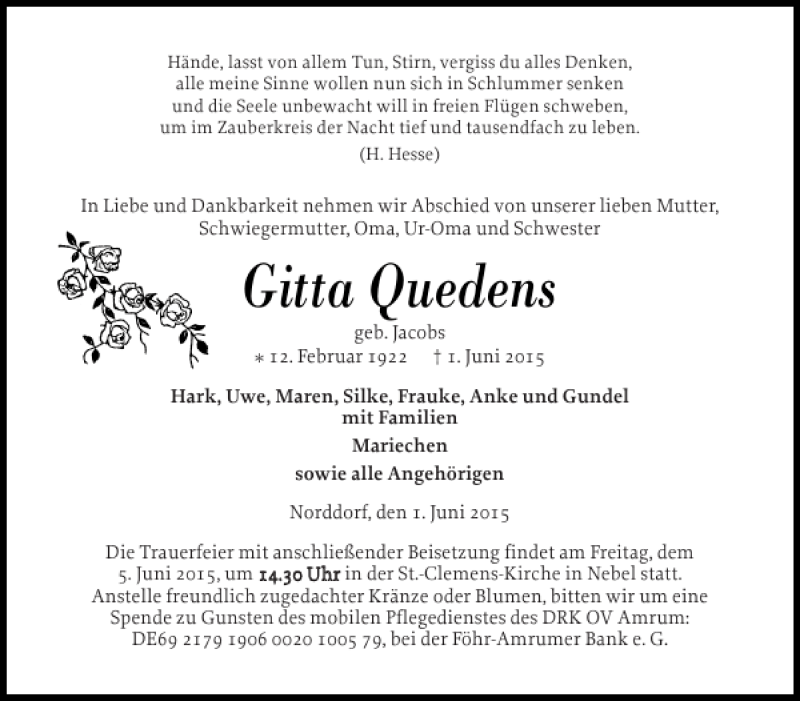 Gitta Christina Quedens (geb. Jacobs) (1922-2015)
