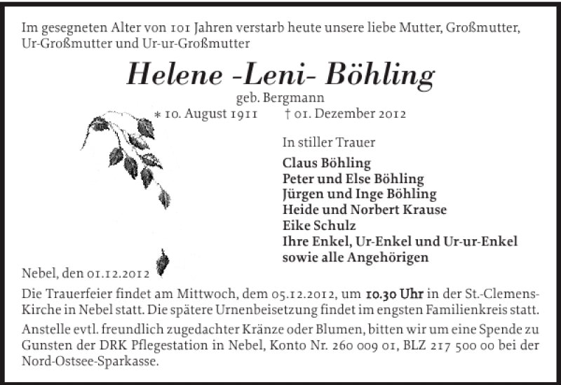 Helene Hedwig Caroline Böhling (geb. Bergmann) (1911-2012)