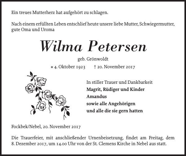 Wilma Henriette Petersen (verw. Petersen) (geb. Grönwoldt) (1923-2017)