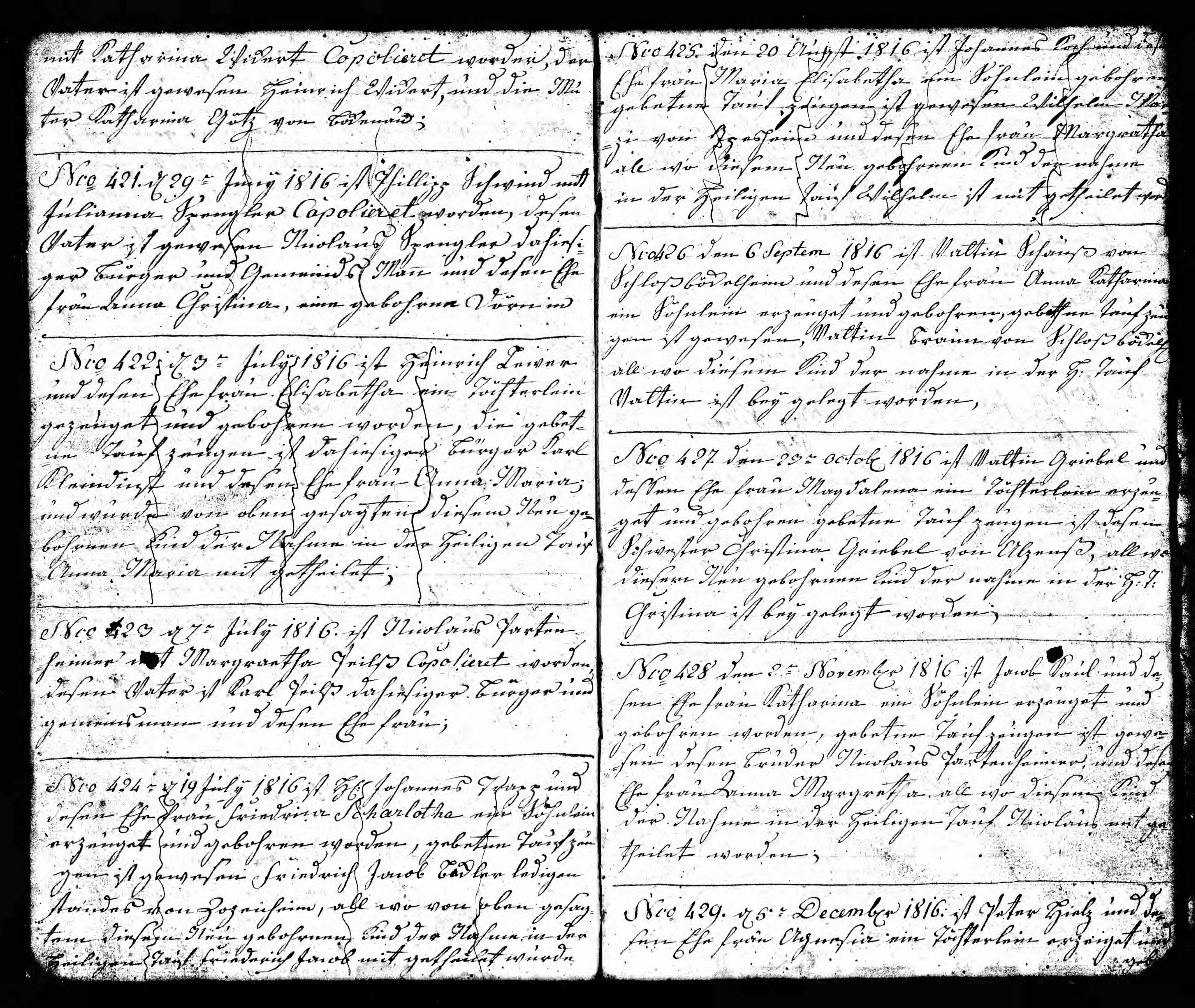 Johannes Jacobus Kaul and his wife Anna Gertrude Karsch were married in Waldbockelheim, Rheinland, Prussia on 19 August 1826. Johannes was the son of Johann Kaul and Anna Catherina Partenheimer. I have documented five children that were born from this union, Catharina, Jacob, John, Peter and Mary Magdalena.