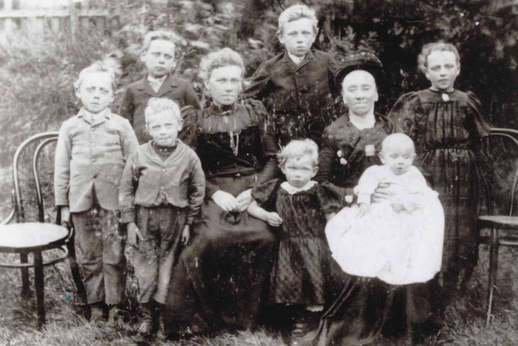 vorne: Waldemar Julius Winfried, Ricklef Victor, Wilhelmine Irene, Johnny Theodor