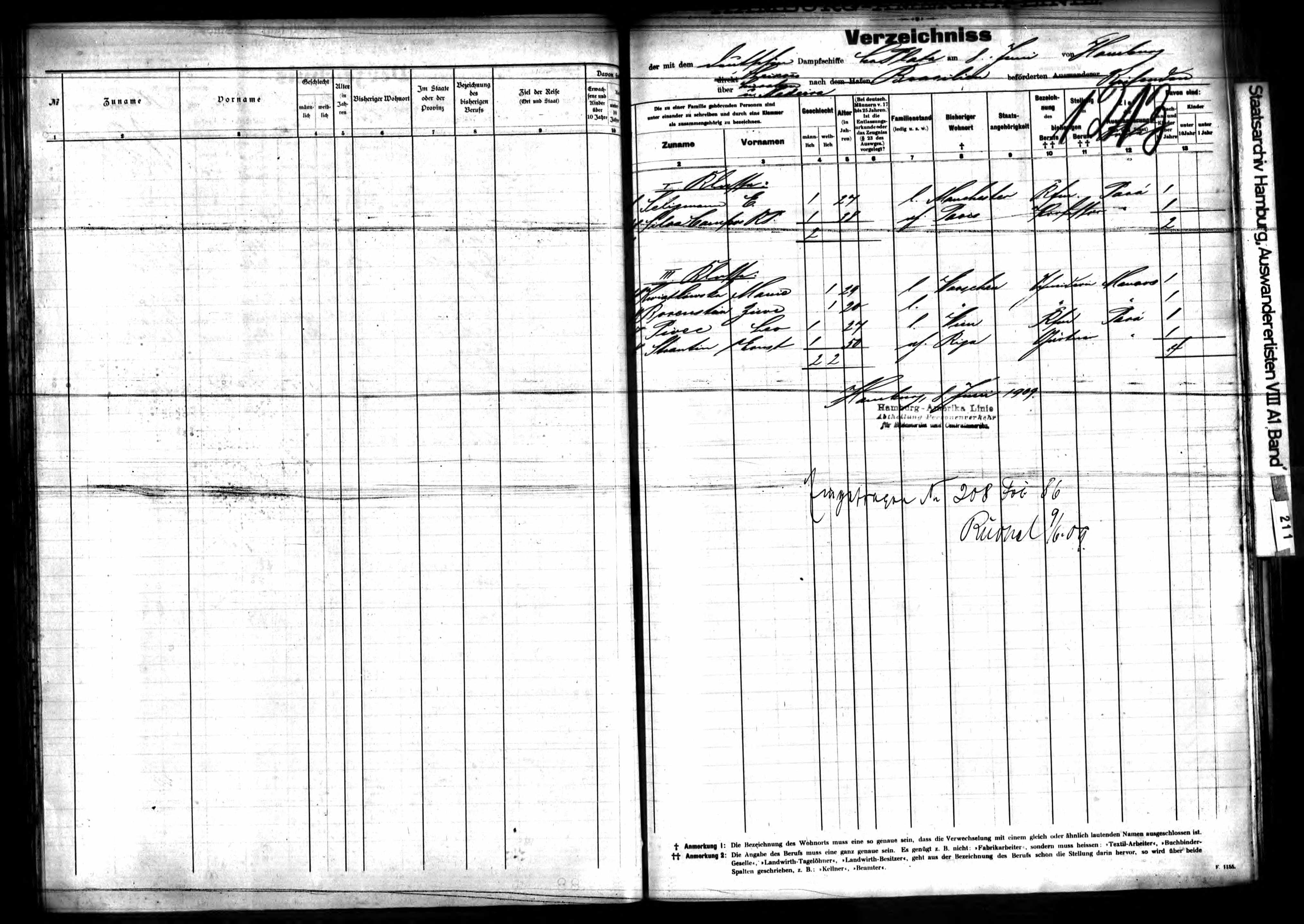 08.06.1909 Abfahrt Hamburg mit "La Plata"