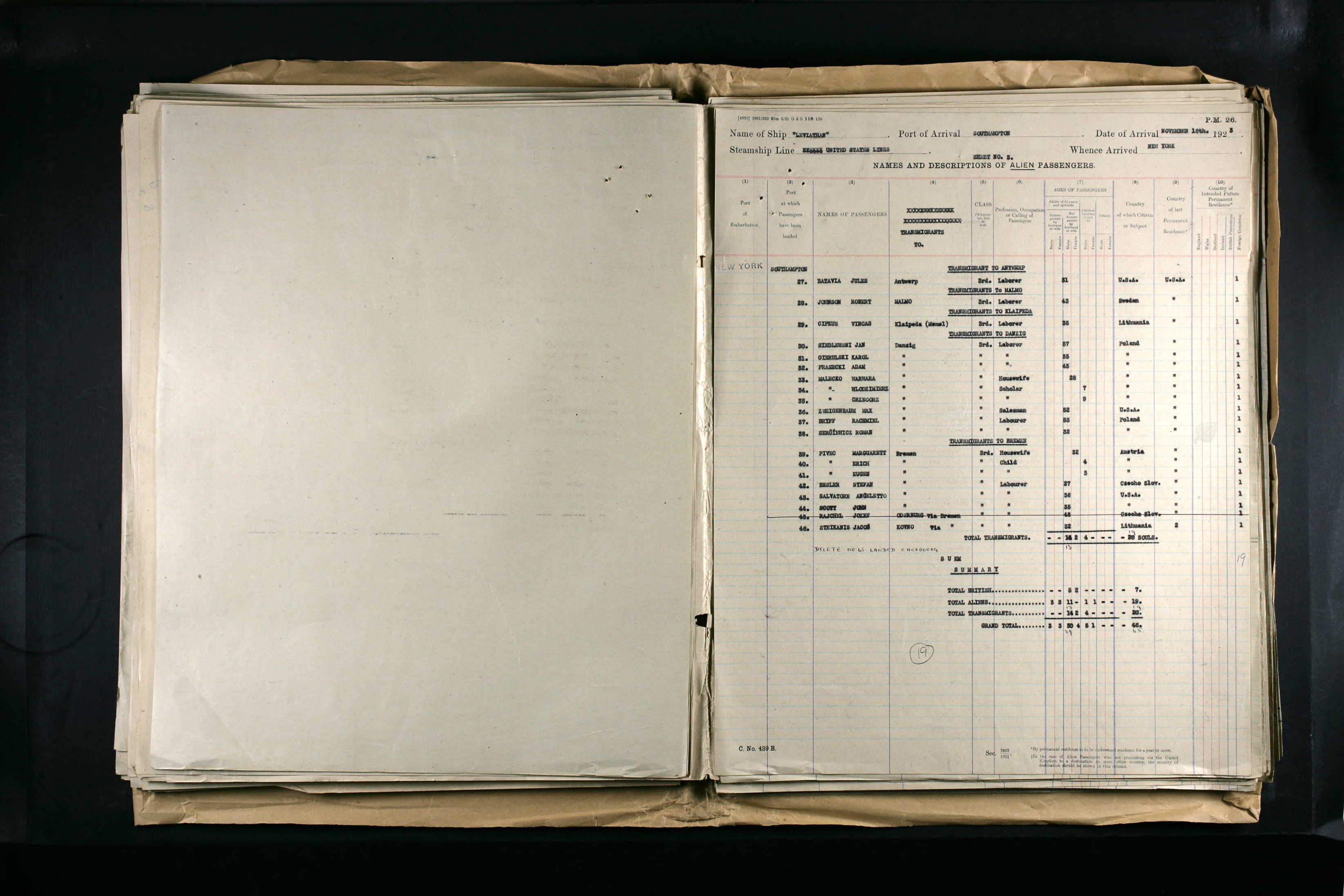 16.11.1923 Ankunft Southampton